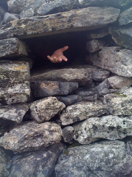 A few years back on Inis Mór we went to visit the beehive huts and we took a photograph of my hand reaching out of the cell window in the manner of St Kevin. Leo explained to me how the poem was about unselfishness and doing things for other people and how St Kevin was kind to the blackbird. The poem itself explains that selflessness can bring pain ‘Imagine being Kevin. Which is he?/Self forgetful or in agony all the time.’