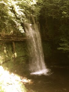 As I moseyed about dog on lead I encountered a Polish lad bringing canoes and kayaks to the water’s edge of the lake. When the gang returned my mother who was feeling her age told me to go up and see the waterfall. She had walked up herself and said on her return “I was glad I did that.”